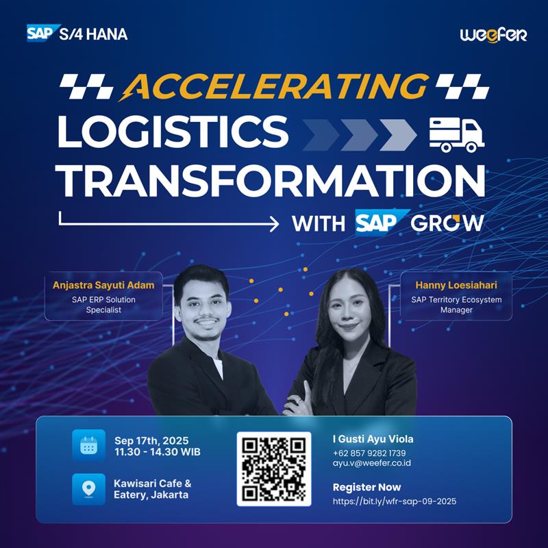 Bergabunglah dalam acara eksklusif “Accelerate Logistics Transformation with SAP GROW” untuk mendalami bagaimana SAP S/4HANA dapat merevolusi operasi logistik di perusahaan Anda.